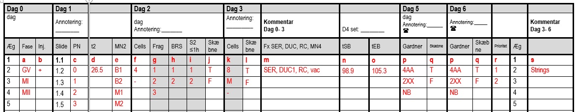 Ved dyrkning i time lapse kan de eksakte tider for de første celledelinger findes.